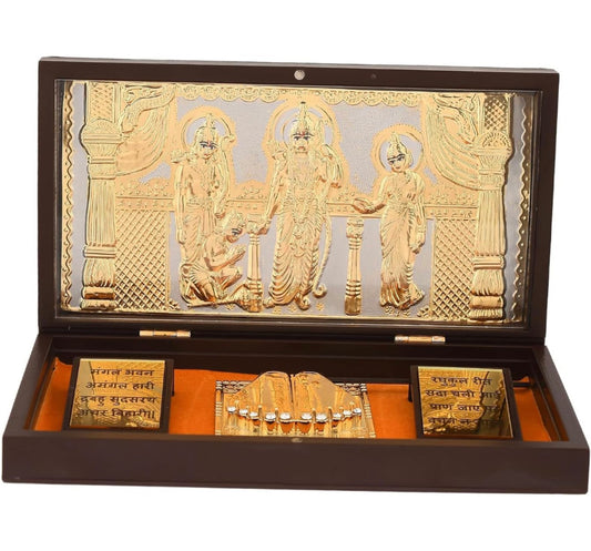 Gold Plated Bhagwan Shree Ram Darbar Charan Paduka | Devotional Prayer Box | Momento With Fragrance Decorative Showpiece Box Packing