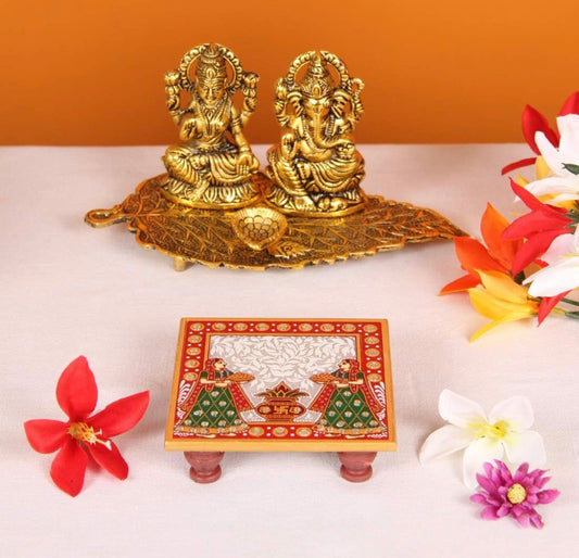 Marble Puja Chowki with Kalash (10.16 Cm X 10.16 Cm X 2.54 Cm.