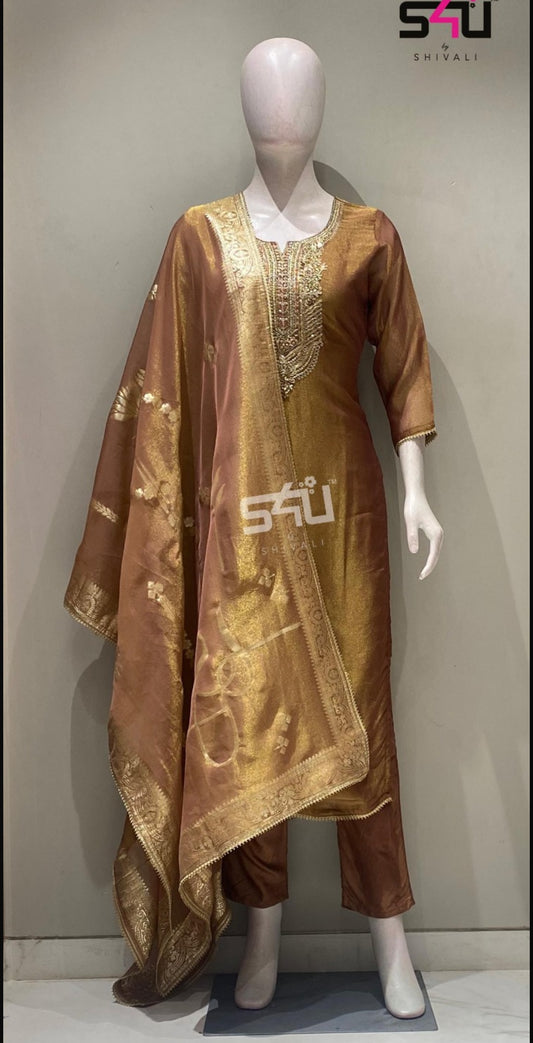 Beautiful designer Embroidered Jimmy Choo Silk Kurta Pant Dupatta Set
