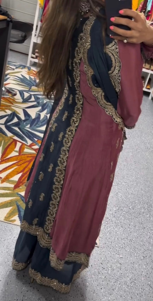 Beautiful designer flare top plazo suit