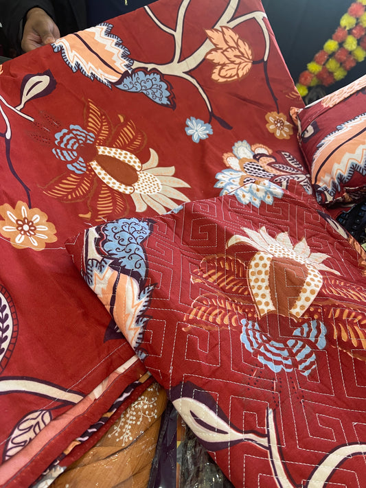Beautiful designer glacé cotton 5 piece bedsheet set