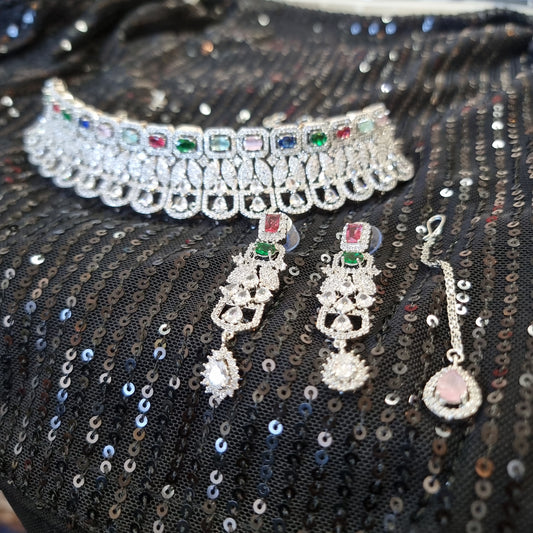 Beautiful designer American Diamond Choker Necklace Set