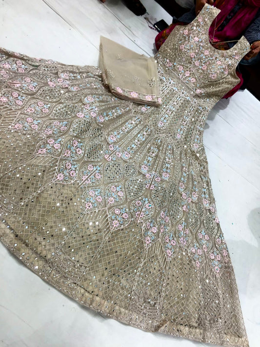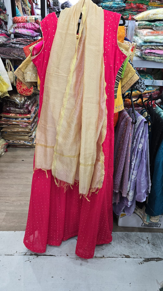 Beautiful designer Dusty Red Georgette Anarkali Suit With Embroidery Work and Dupatta