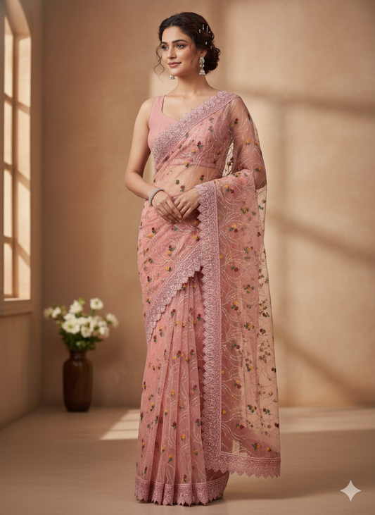 Beautiful designer fully embroidery net saree