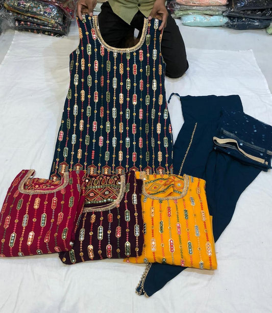 Beautiful designer nyra cut lucknowi embroidery plazo suit