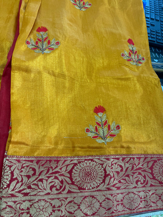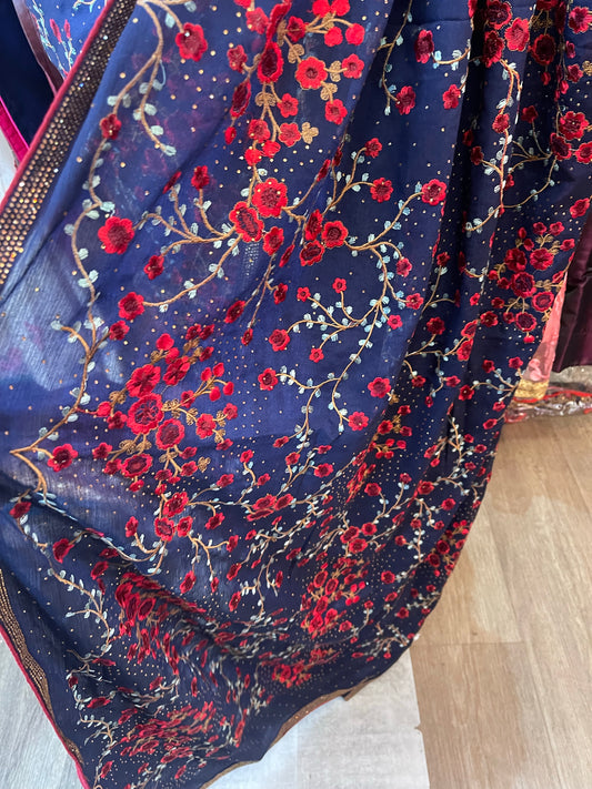 Beautiful floral embroidery designer Kashmiri embroidered saree