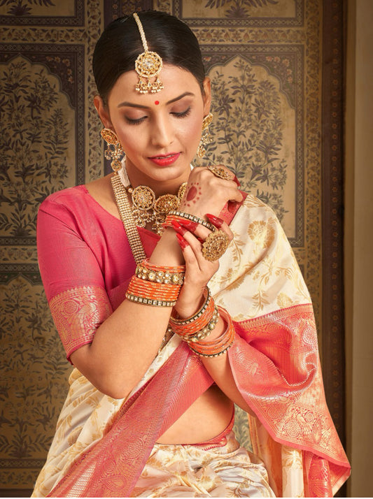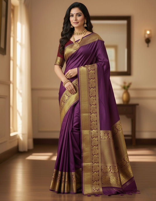 Beautiful designer Women's Banarasi Silk Blend Woven Zari With Tussles Saree and Jacquard Woven Blouse Piece