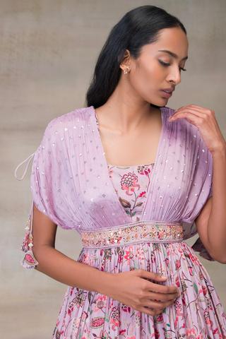 Beautiful designer Indowestern dhoti choli shrug suit