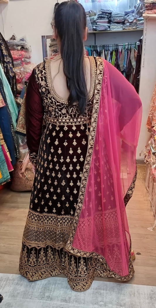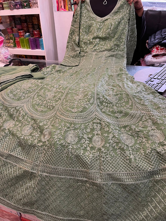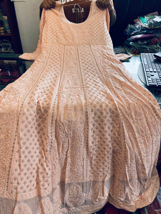 Beautiful designer gown style lucknowi embroidery anarkali suit