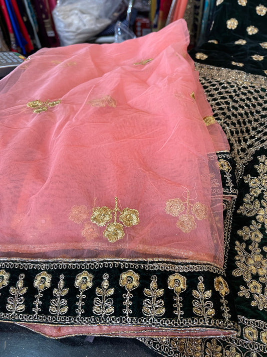 Beautiful designer heavily embroidery bridal/semi bridal lengha