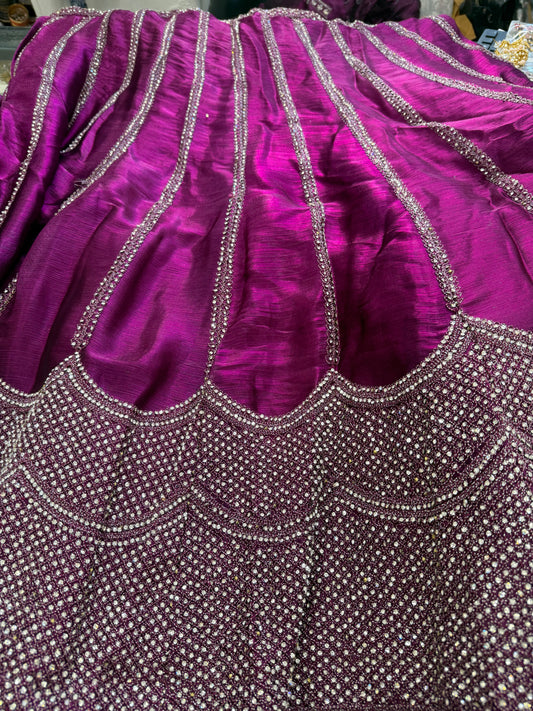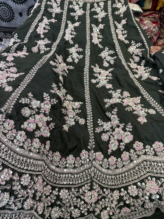 Beautiful designer heavily embroidery plus size Jimmy Choo semi stitch lengha