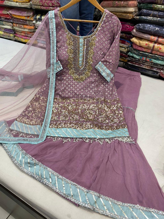 Beautiful designer indo western style crop top plazo suit with koti/shrug