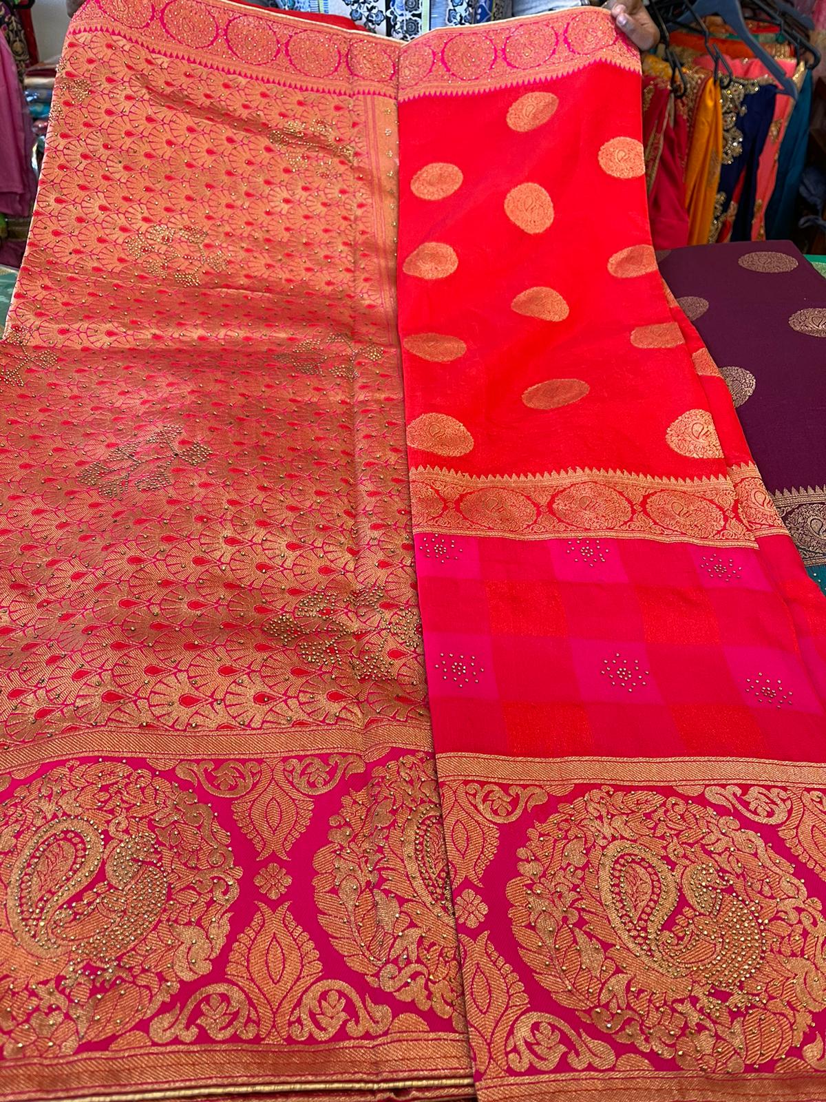 This designer collection of box sarees is crafted from ethnic fabric, providing a unique visual experience. The intricate designs are perfect for a variety of occasions, allowing you to make a lasting impression.