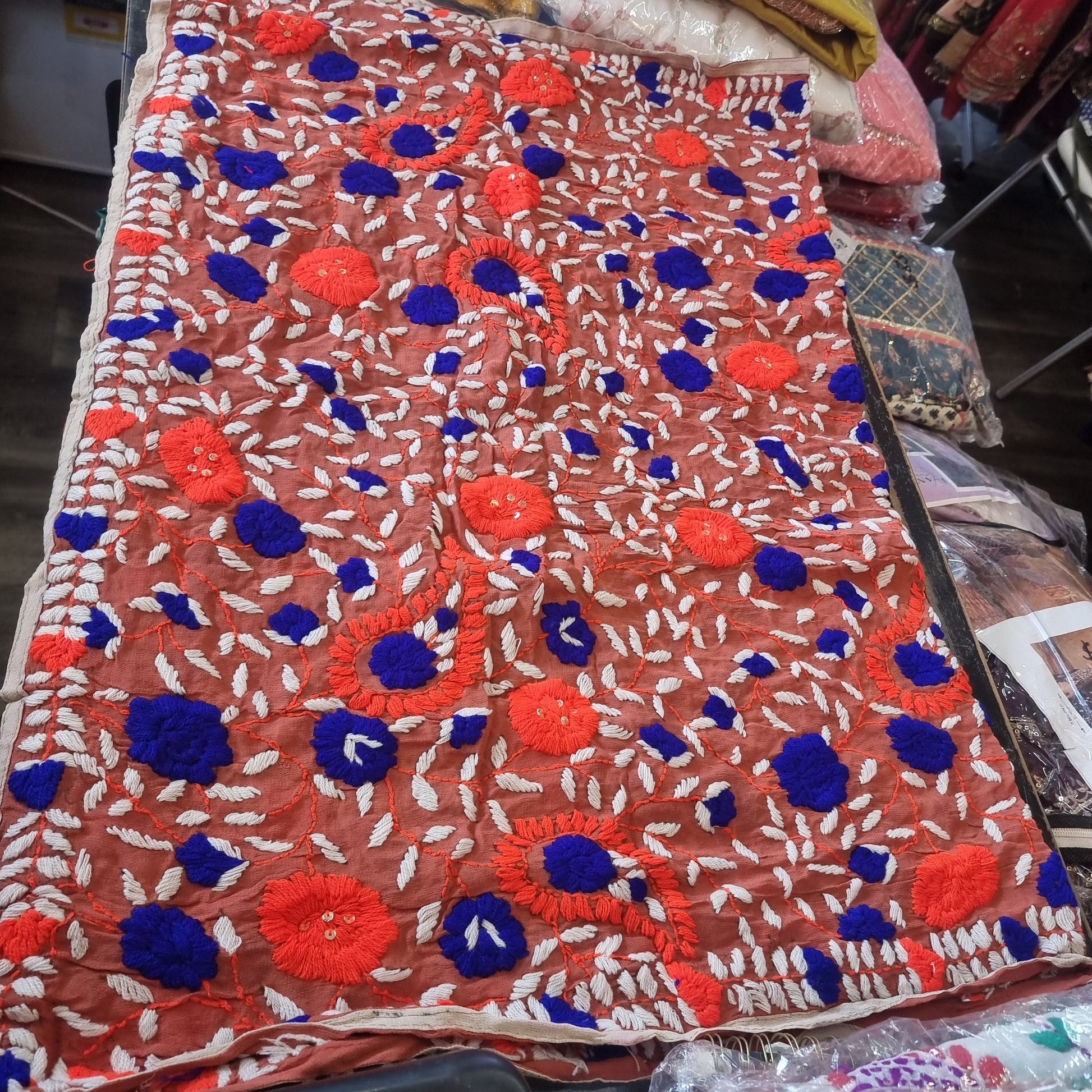 This beautifully designed dupatta features exquisite kantha work on georgette fabric, adding a touch of elegance to any outfit. The intricate embroidery and soft, lightweight material make it a must-have accessory for any fashion-forward individual. Experience the luxury and sophistication of this designer dupatta.