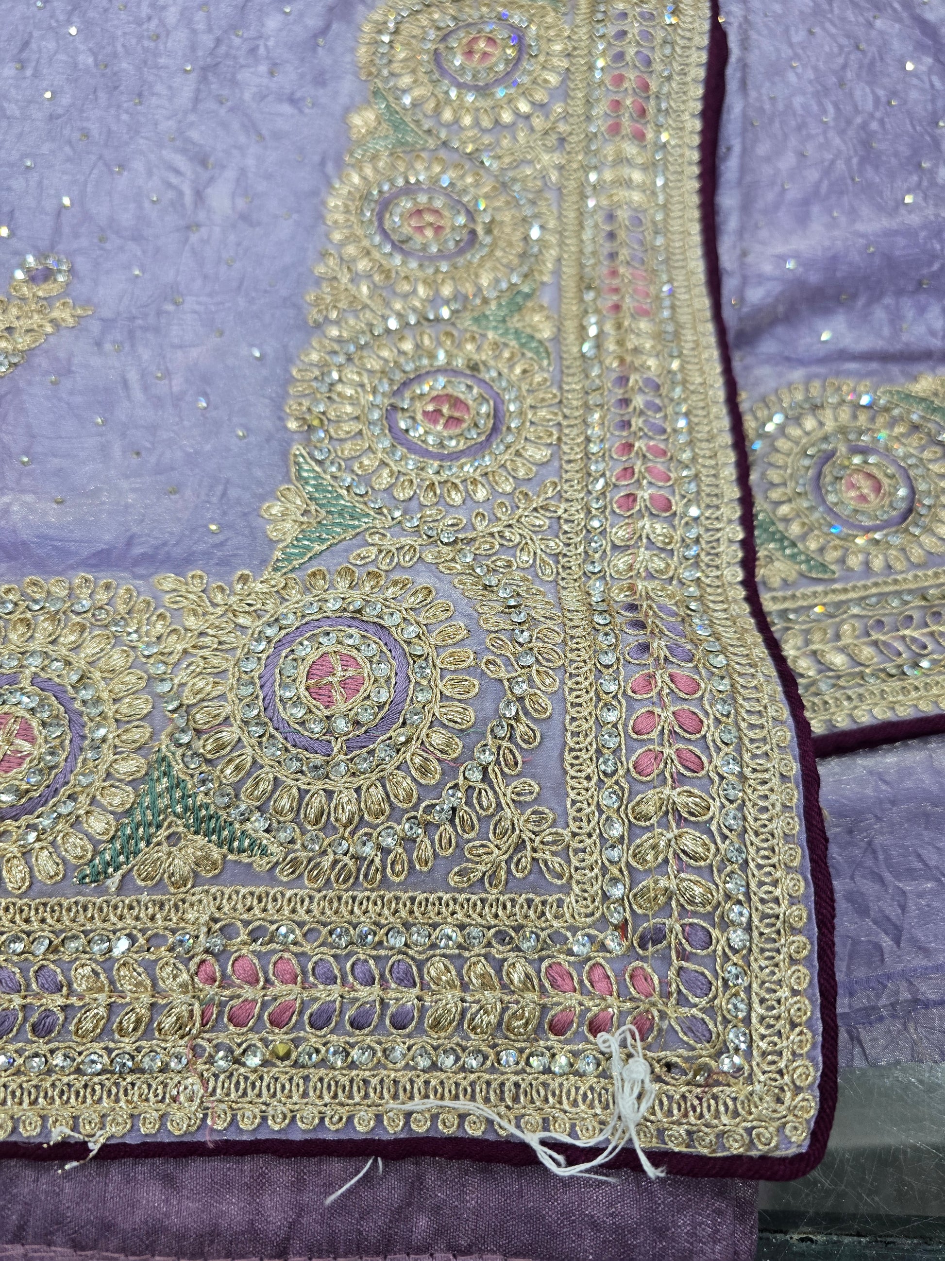 Crafted from the finest fabric by Jimmy Choo, this designer saree boasts full embroidery for a stunning, ethnic look. Elevate your style with 100% handmade detailing that exudes luxury and sophistication. Perfect for any special occasion.