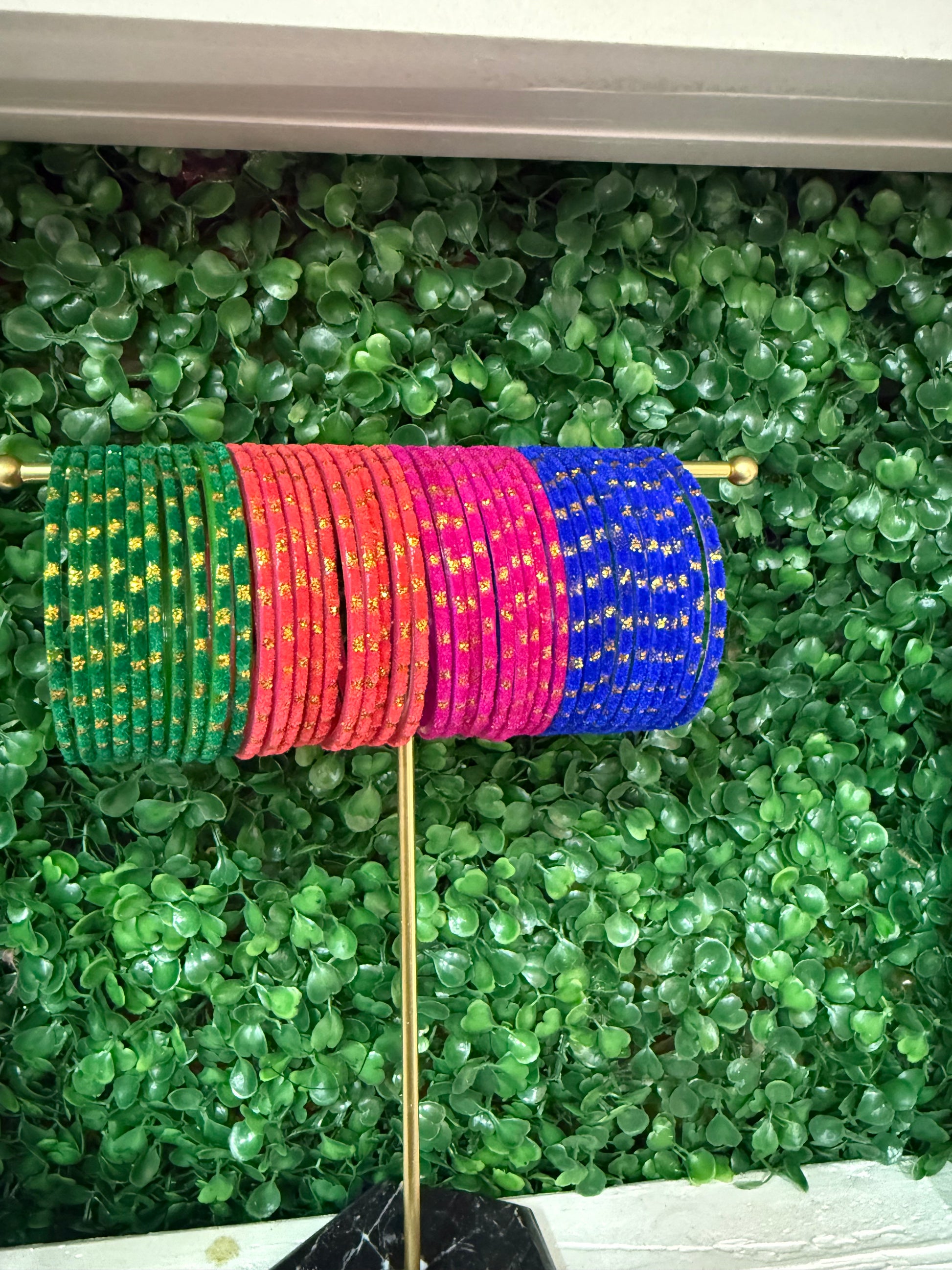 This beautiful designer glass bangle box set features a total of 70 ethnic bangles. The perfect complement to any outfit, these bangles add a touch of elegance and sophistication. With 60 bangles in the set, you'll have plenty of options to mix and match for a unique and stylish look.