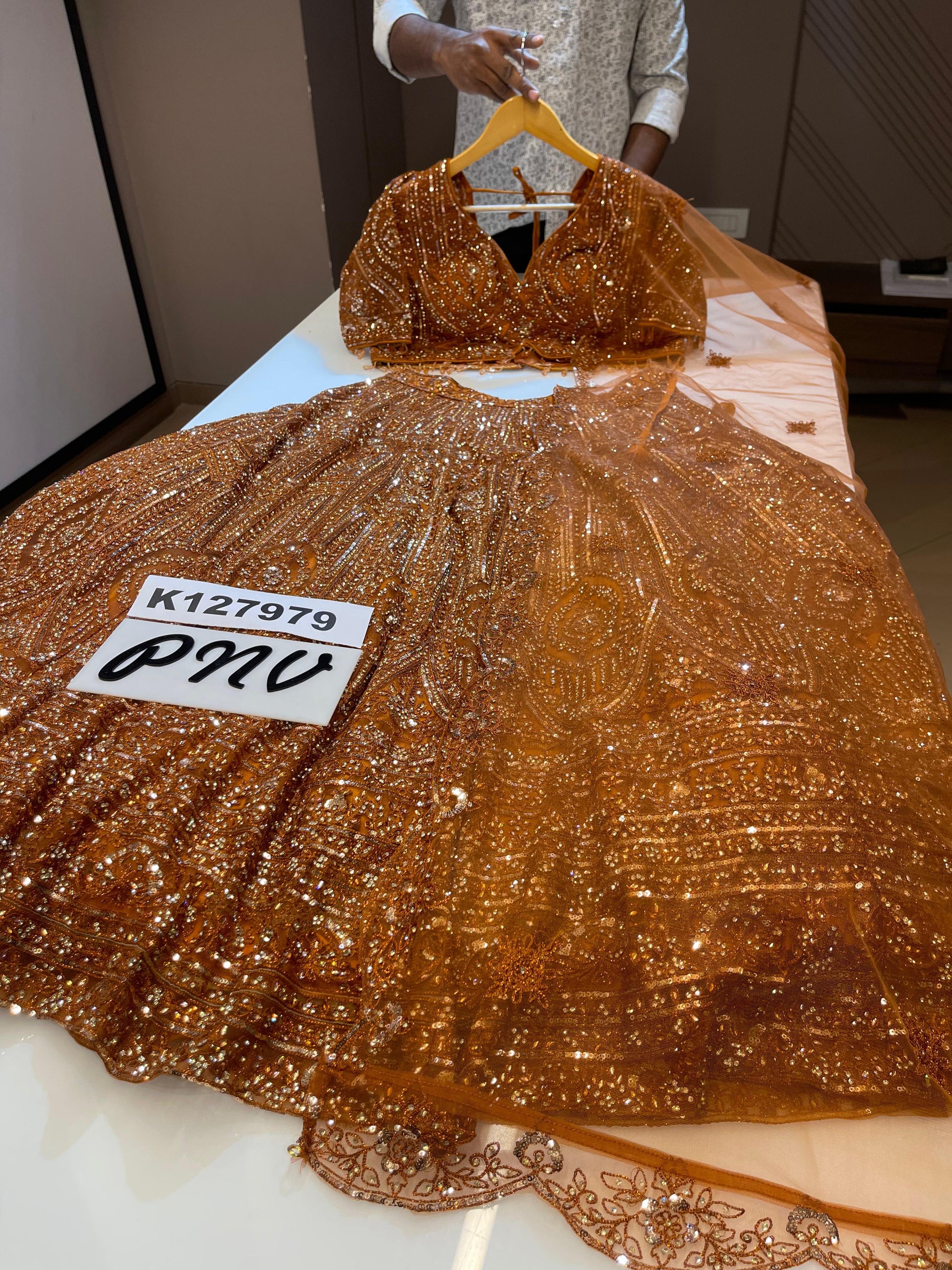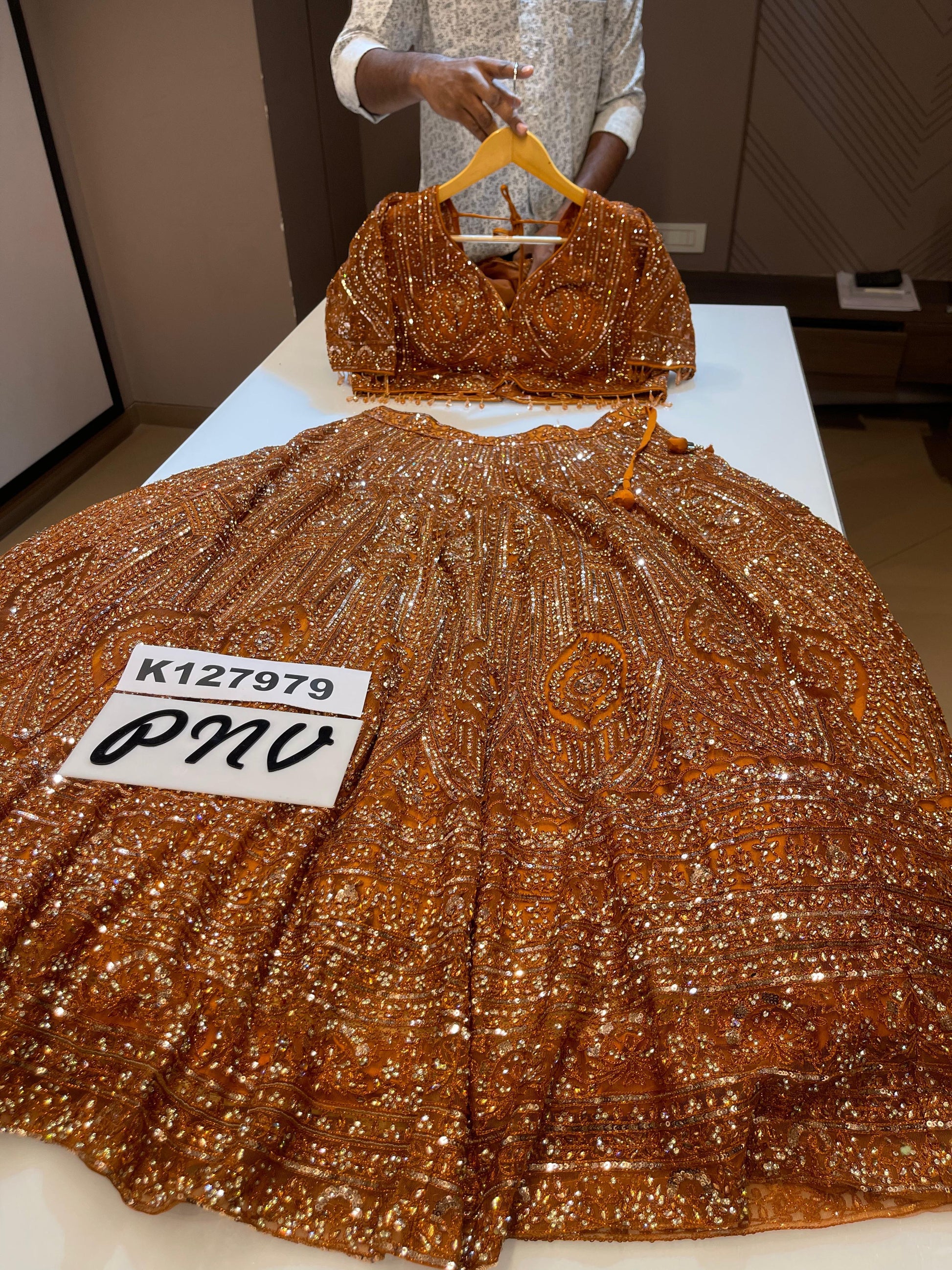 Effortlessly elegant, this beautiful designer lengha choli features intricate embroidery and is perfect for reception wear. Elevate your style with this stunning piece, guaranteed to make a statement.