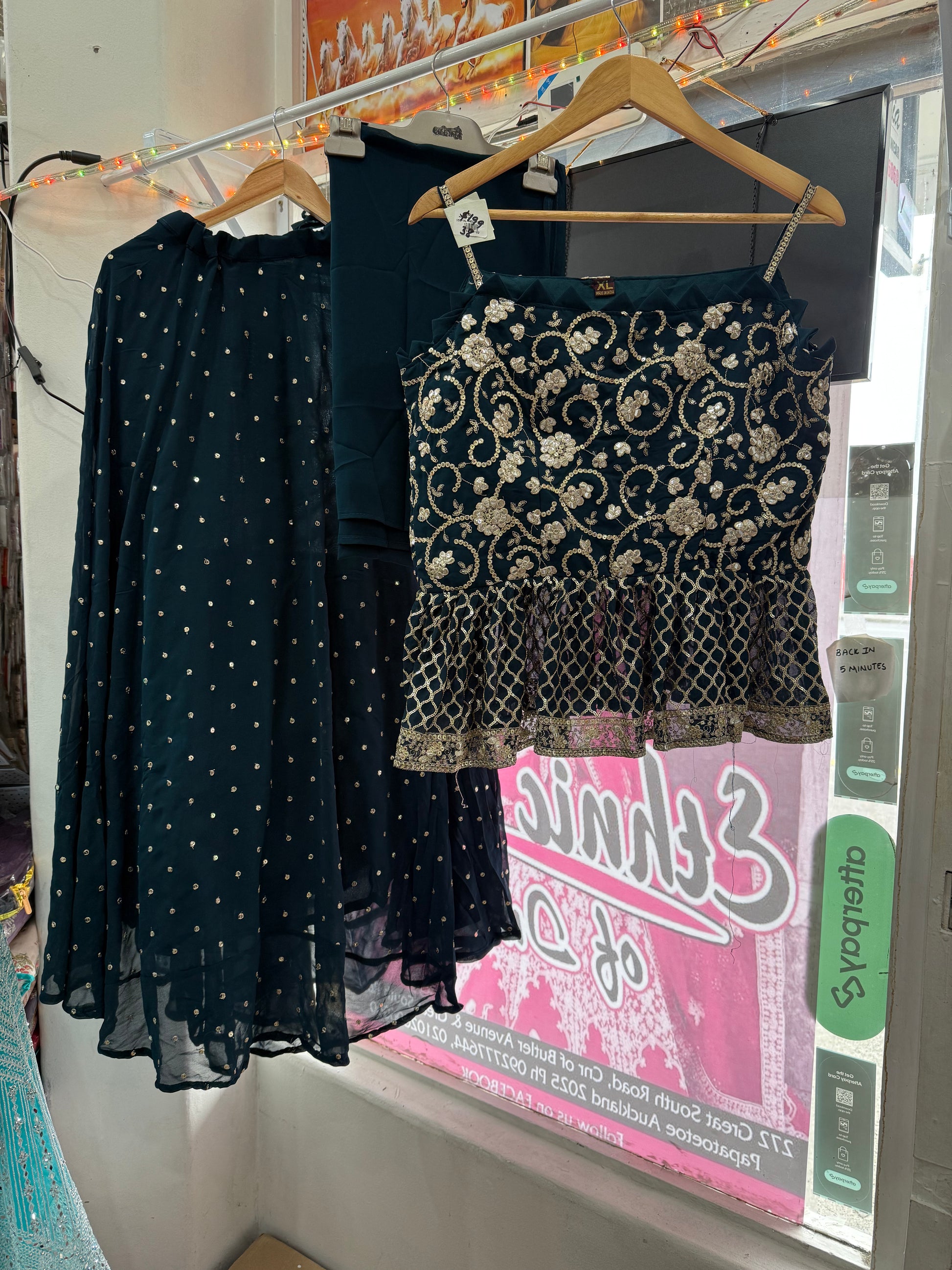 This elegant lengha choli features lightweight and flowy georgette fabric, perfect for any formal or special occasion. With its ethnic Indian design, it will add a touch of sophistication to your fashion wardrobe. A must-have for any style-conscious individual.