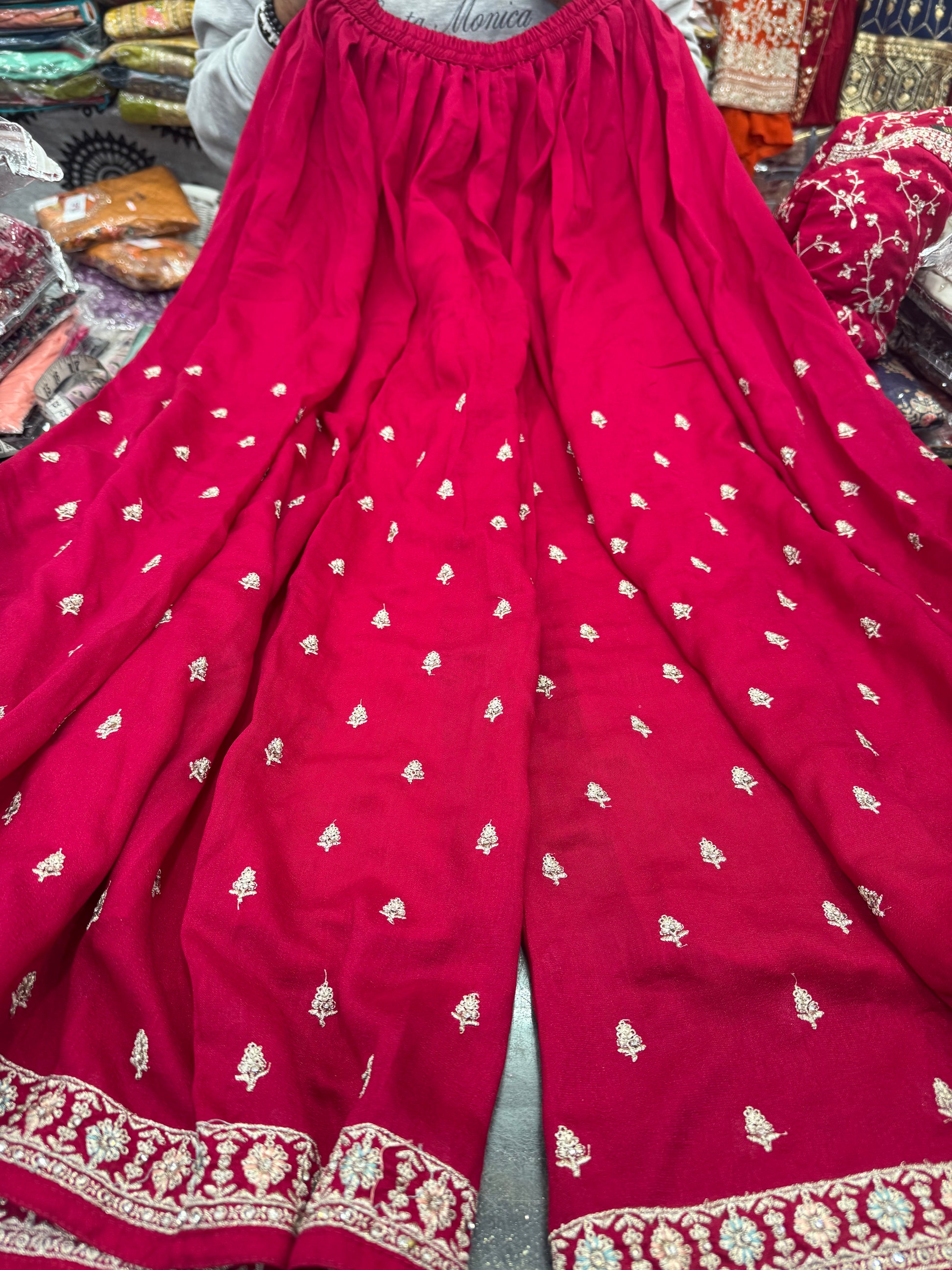 Made from luxurious chinnon silk fabric, this beautiful designer peplum top plazo suit features exquisite front and back embroidery. Elevate your style with this elegant and versatile piece, perfect for any occasion. Experience the comfort and sophistication that comes with high-quality materials and expert craftsmanship.
