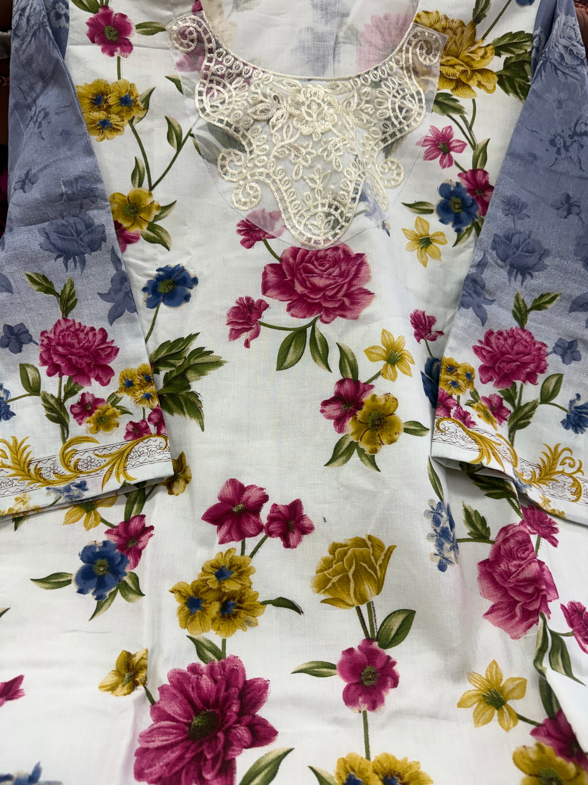 The Beautiful Designer Plazo Suit is crafted from high-quality cotton, offering breathability and comfort. This natural fabric enhances moisture absorption, making it ideal for warm weather. The elegant design combined with cotton's durability ensures that this suit retains its aesthetic appeal while providing ease of movement for everyday wear.