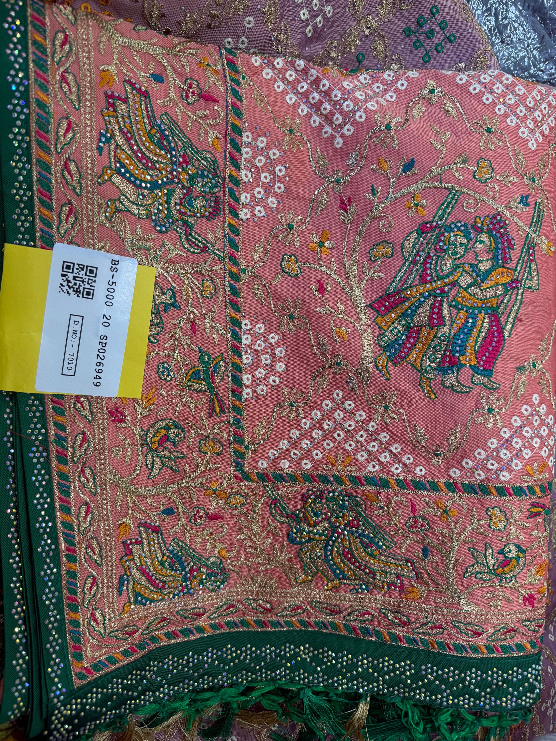 Experience the beauty of ethnic fashion with our designer Radha Krishna silk saree. Made with luxurious silk and adorned with intricate embroidery, this saree is a must-have for any wardrobe. Elevate your style with this timeless piece that celebrates the rich cultural heritage of India.