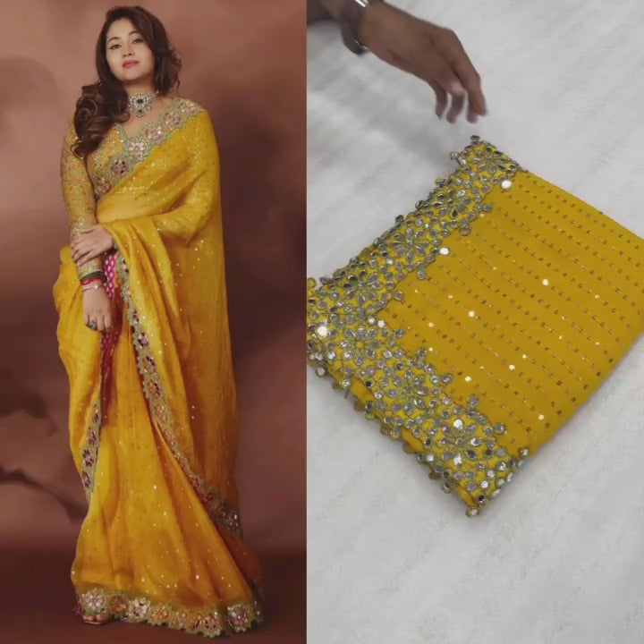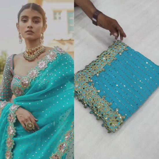 ORIGINAL MIRROR WORK DONE IN LACE BORDER,BLOUSE & SLEEVES