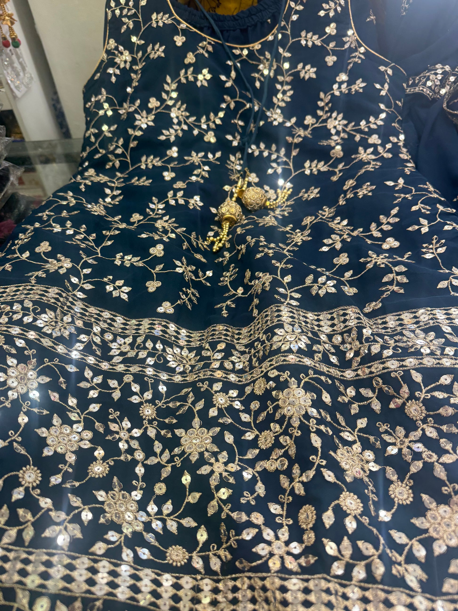 Expertly crafted with stunning front and back embroidery, this beautiful designer sharara suit exudes elegance and grace. Perfect for any occasion, its intricate details and exquisite design are sure to make a statement. Elevate your style and feel confident with this one-of-a-kind piece.
